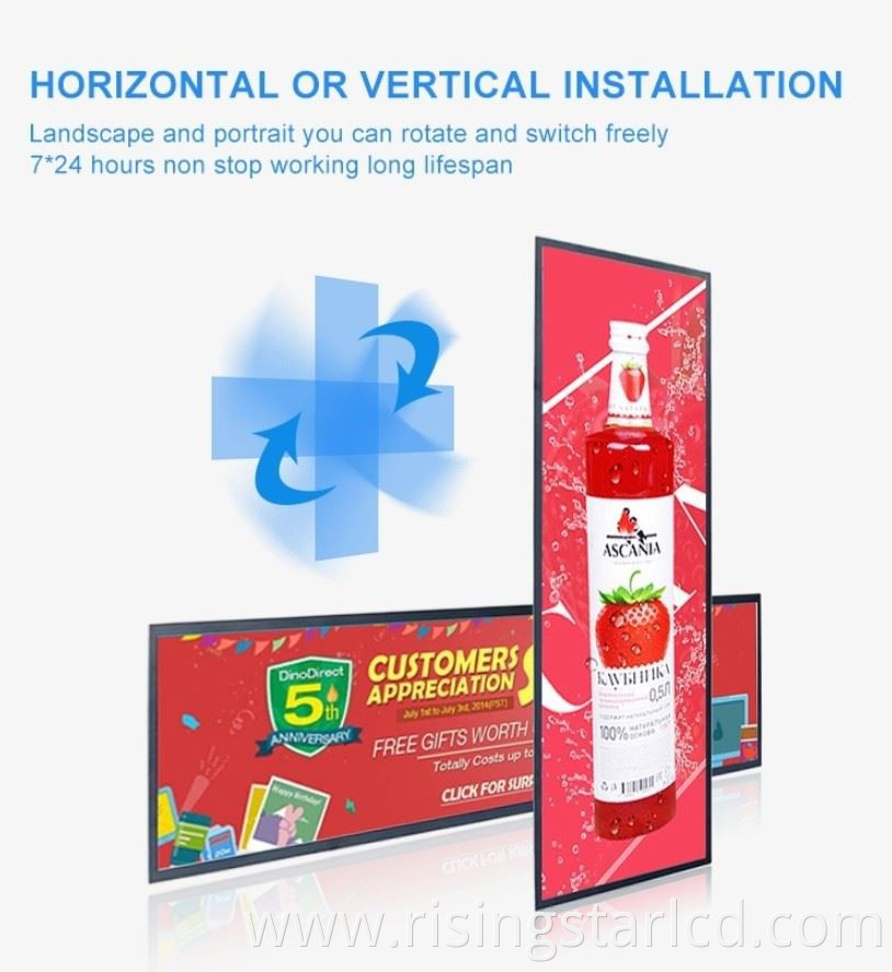 Hot Tags: shelf edge stretched bar lcd, China, factory, cheap, price, customized, quotation, window facing LCD, lcd bar advertising, Commercial Stretched Lcd Display, stretch display, Bar LCD Advertising, Commercial Bar Lcd Display, Commercial Lcd Display, LCD Panel, Lcd Module, High Brightness Display.